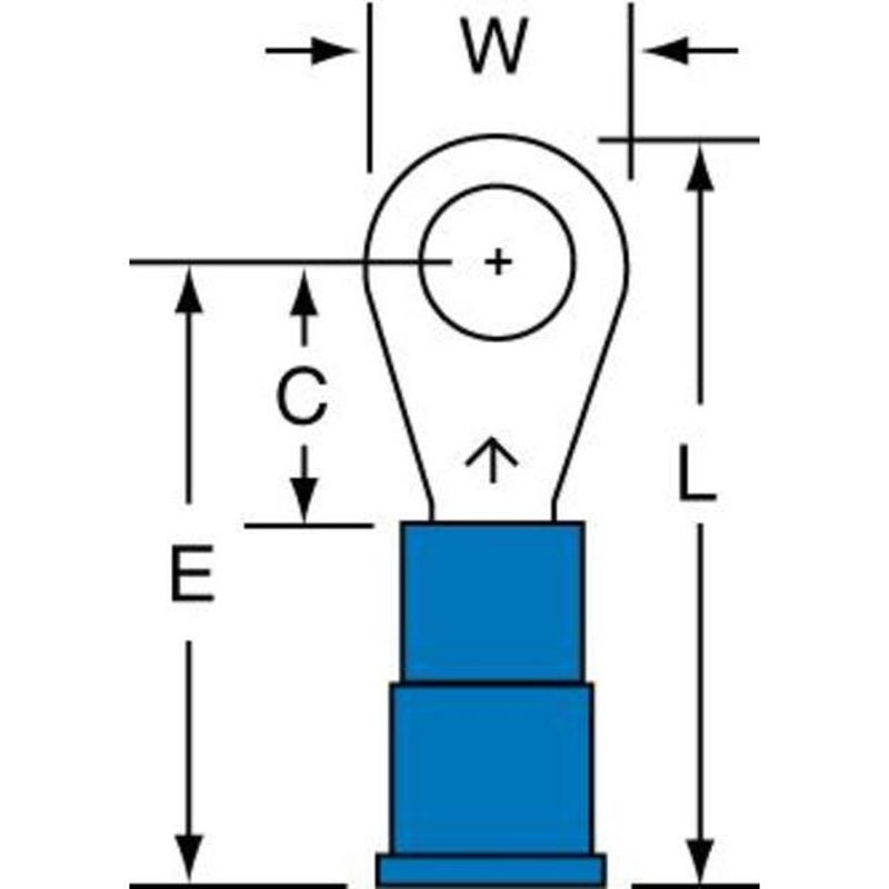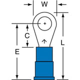 Ring Tongues, Vinyl-Insulated, Wire Range: 16 - 14, Stud Size: 10, Color: Blue, 1000/PK
