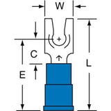 Locking Fork, Vinyl-Insulated, Wire Range: 16 - 14, Stud Size: 6, Color: Blue, 25/PK