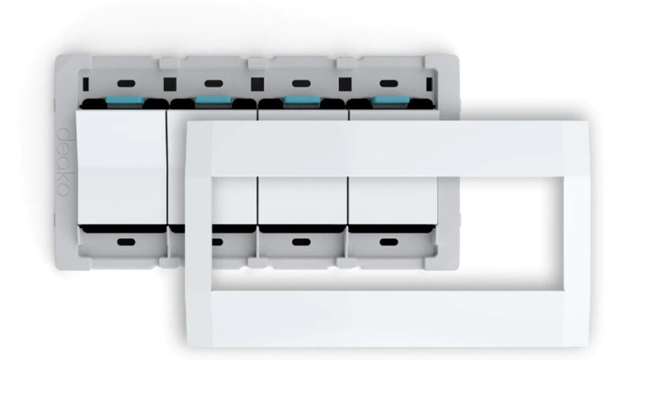 4-Gang Quick Wire Backplate with Single Pole Simple Rocker Switch, White By Deako DS-BS4X-WHNL-UCQ