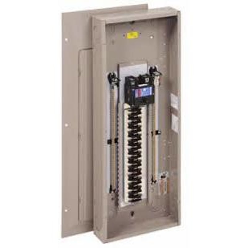 200/225 Amp, 1-Phase, Main Breaker Loadcenter, 20-Space, 40-Pole, Copper Bus, Solar Ready, Cover: Surface, NEMA 1. Max. PV Input: 70A, 35kAIC. Type: Main Breaker Amps: 200 Mounting: Flush Mounting: Surface IP/NEMA Rating: NEMA 1 Phase: 1 Volts AC: 120/240 Family / Style: BR Circuits: 40 IP/NEMA Rating: NEMA 1 Interrupt...