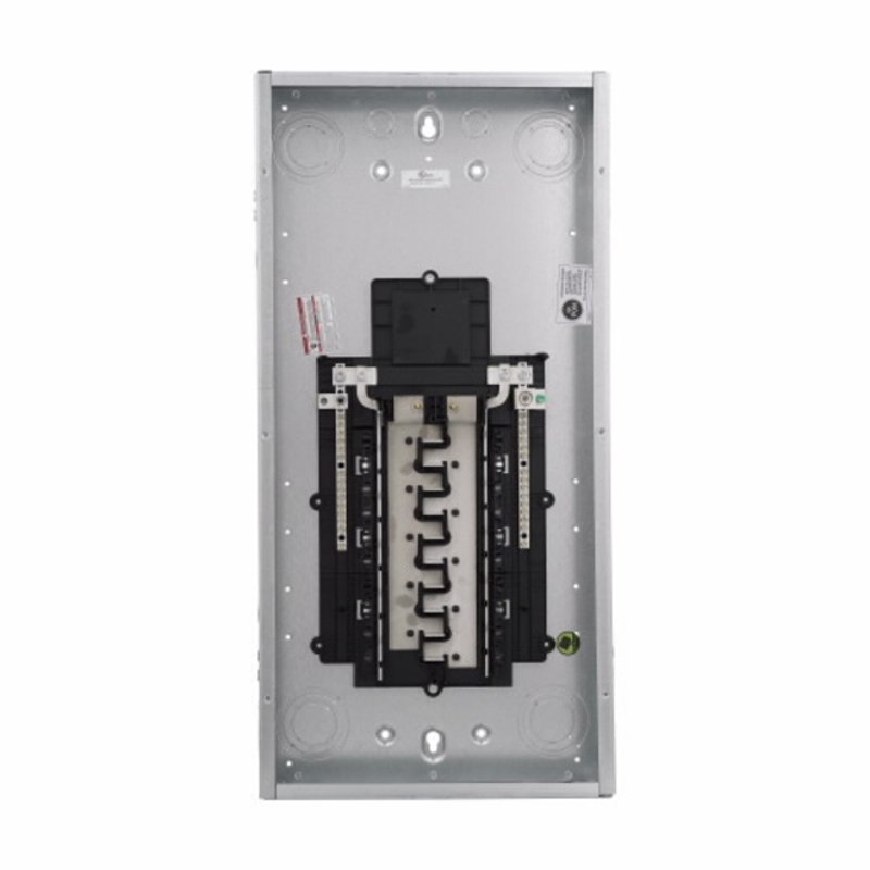 200 AMP, 120/240V AC, 1-Phase, Plug On Neutral, Main Lug Loadcenter, 20-Space, 40-Pole, Aluminum Bus, Cover: Surface, NEMA 3R - Rainproof. Dims: H: 21", W: 14.31", D: 5.19"