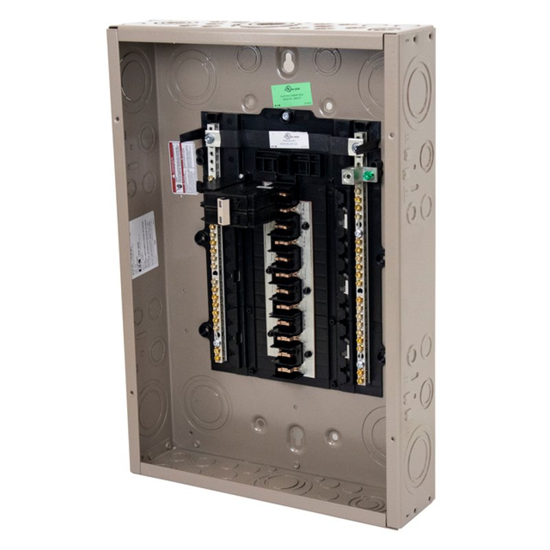125 AMP, 120/240V AC, 1-Phase, Plug On Neutral, Main Lug Loadcenter, 35 kAIC, 22-Space, 24-Pole, Copper Bus, NEMA 1 - Indoor. Cover Size: E