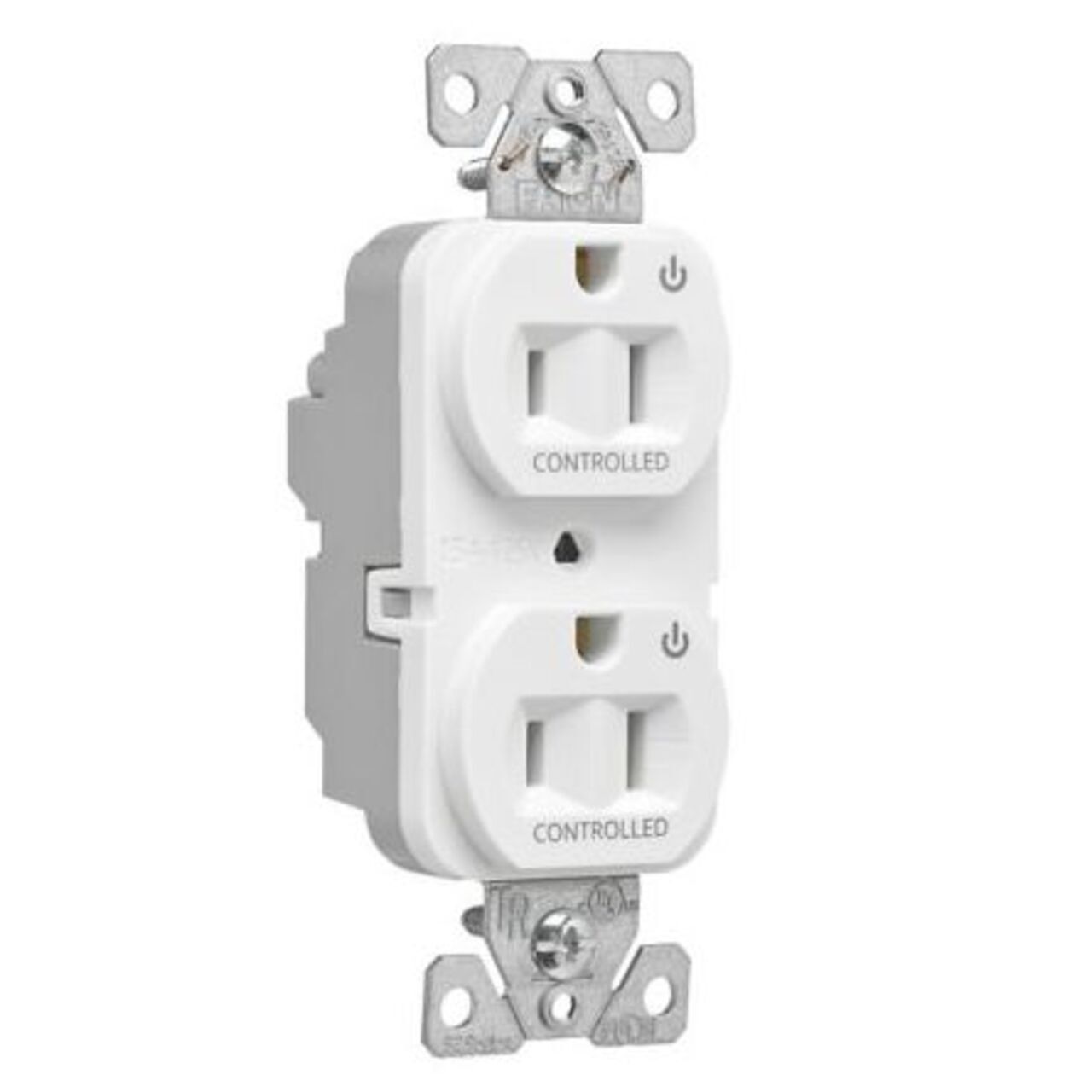 EZLink Modular Duplex Receptacle, 15 A, 125 VAC, 60 Hz, Dual Controlled, NEMA 5-15R, Three-Wire, White