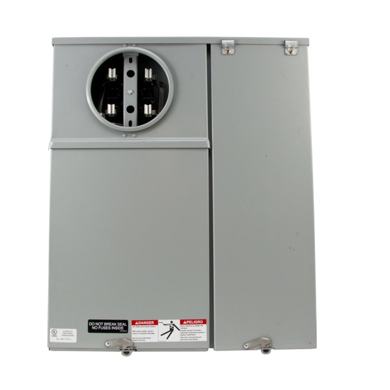 100 Amp, 1-Phase, 4 Jaw, Ring-Type. 3-Wire, 120/240, Surface Mount, Top/Bottom Feed, NEMA 3R. Main Disconnect: (1) 100 Amp, 2-Pole 10 kAIC Breaker. 12/24 Distribution. Test Block Bypass.