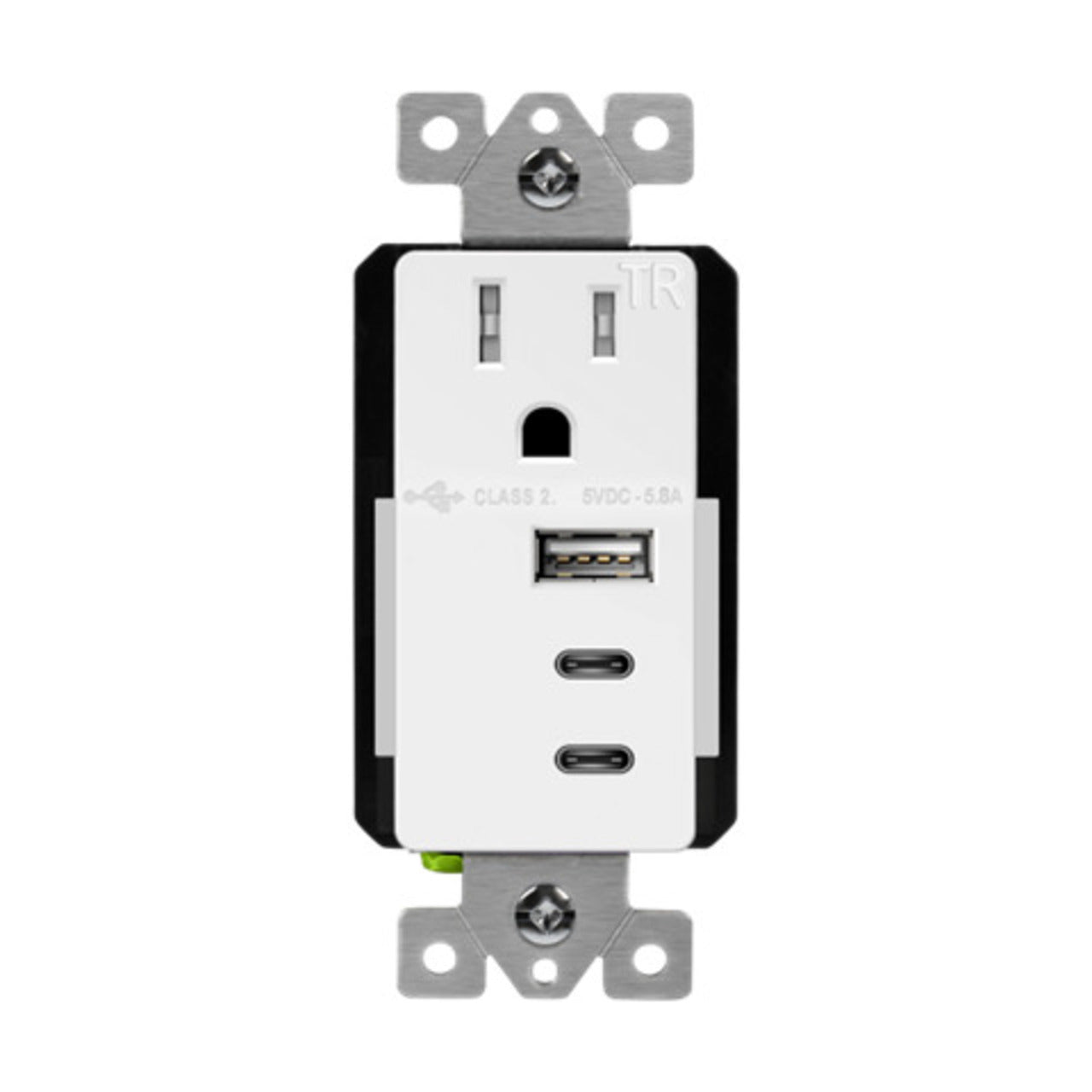 15A TR Commercial Grade Dual USB-C & USB-A Receptacle, White