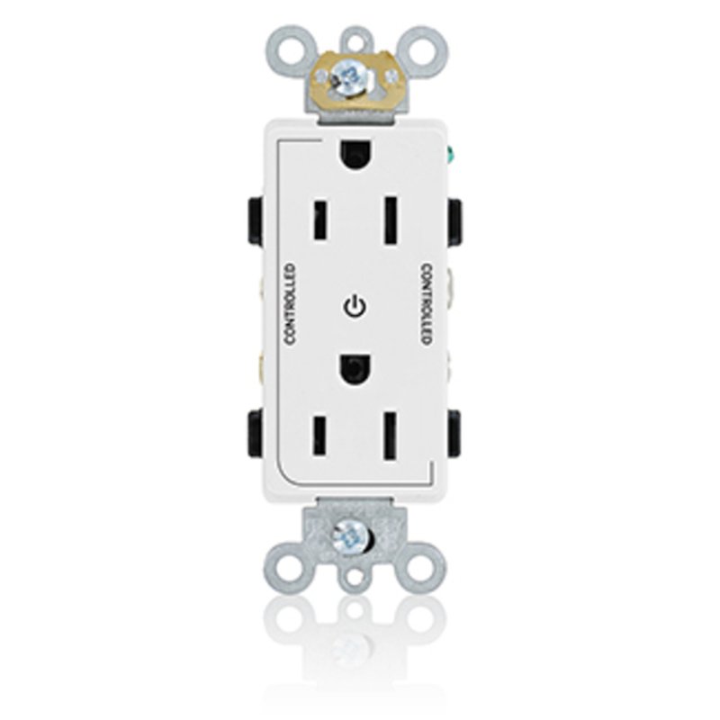 15 Amp, 125 Volt, NEMA 5-15R, 2P, 3W, Decora Plus Single Receptacle, Straight Blade, Commercial Grade, Self-Grounding, Heavy Duty, Back & Side Wired, Steel Strap, White