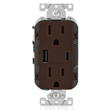USB Type A/Type-C Wall Outlet Charger with 15A Tamper-Resistant Outlet, 18W, Brown