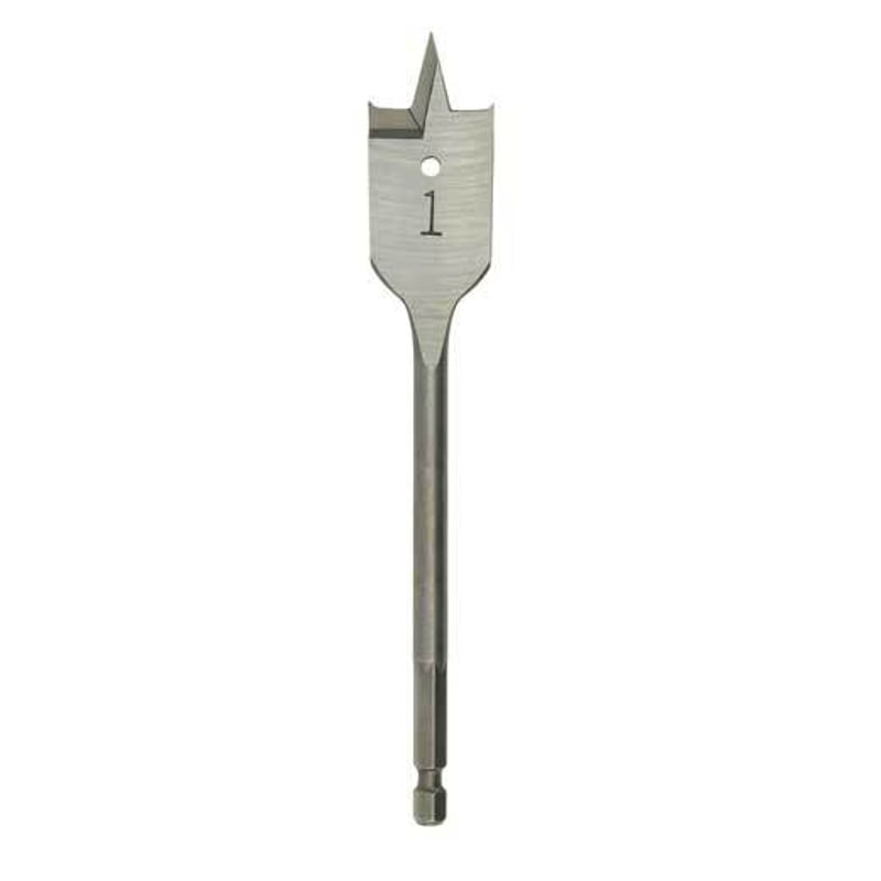 Spade Bit, Flat Boring, Length: 6", Hole Diameter: 1-1/8", Hex Shank: 1/4".