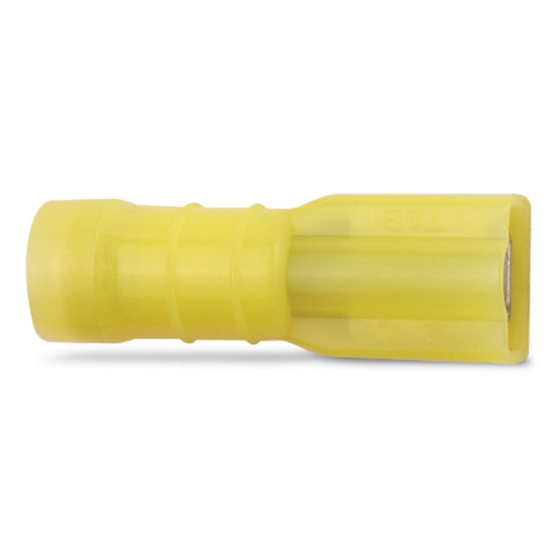250 Insulated Female Disconnect, 12-10 AWG, .25 IN W x .032 IN THK Tab, Brazed Seam Barrel, Brass, Yellow
