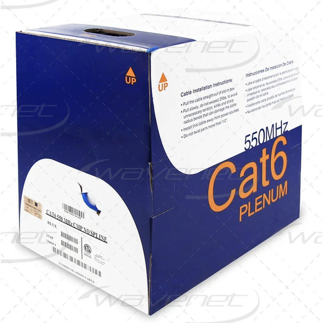 Cat6 Plenum (CMP) No Spline Yellow Reelex Ll Pullbox 1,000' By Wavenet 6E04UPSPLSYL4NS